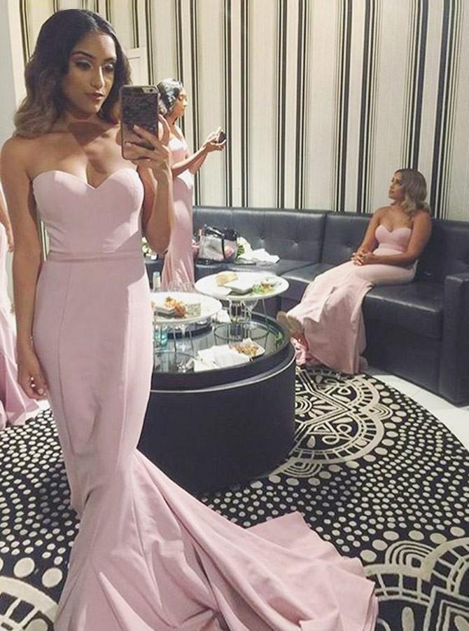 Mermaid Sleeveless Sweetheart Pink Satin Long Bridesmaid Dress (BMA20155)