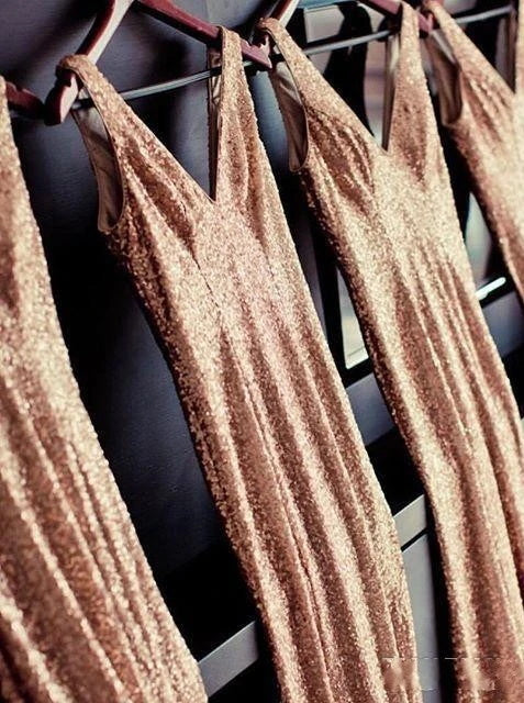 V-Neck Sleeveless Sweep Train Champagne Sequined Bridesmaid Dress (BMA20146)