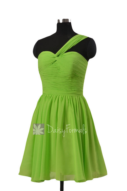 Chiffon mini skirt in sweetheart neckline with pleating details and flowing skirt with rich details.One shoulder straps and visible waistband brings delicate design to it. Can be a good choice for wedding parties, prom parties or other special occasions. Dress length of this style is around 32.5"-34.5". Available in 59 colors from our color chart, or contact me for a Custom Color to match your wedding theme. Yellow green chiffon mini skirt bridesmaid dress bridal party dress(bm731n).
